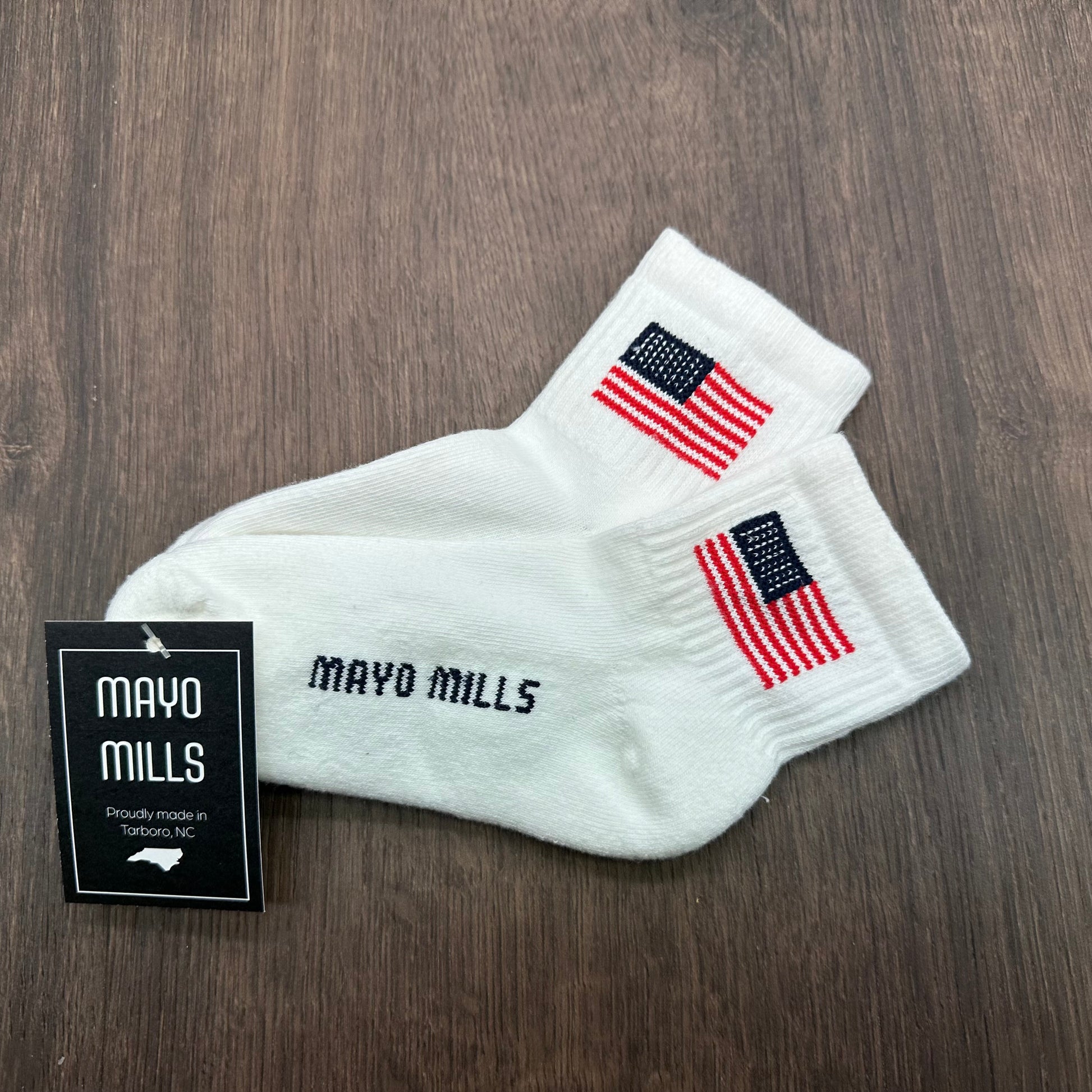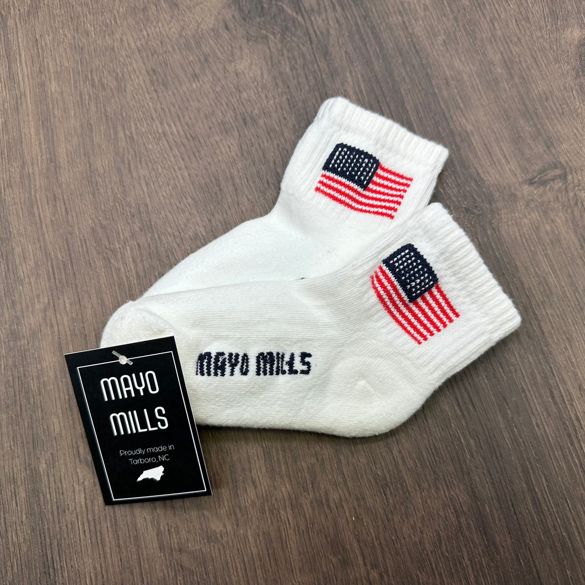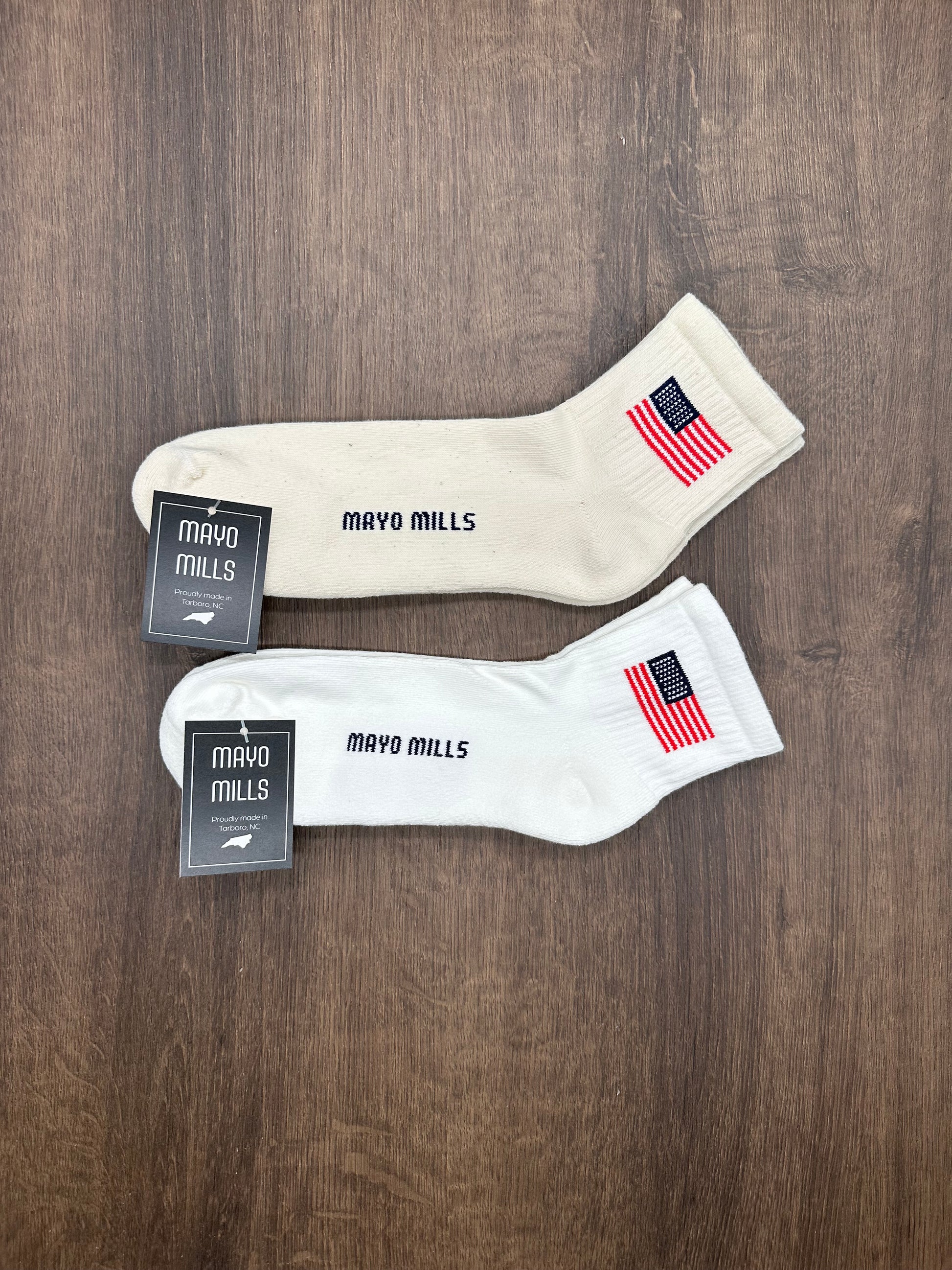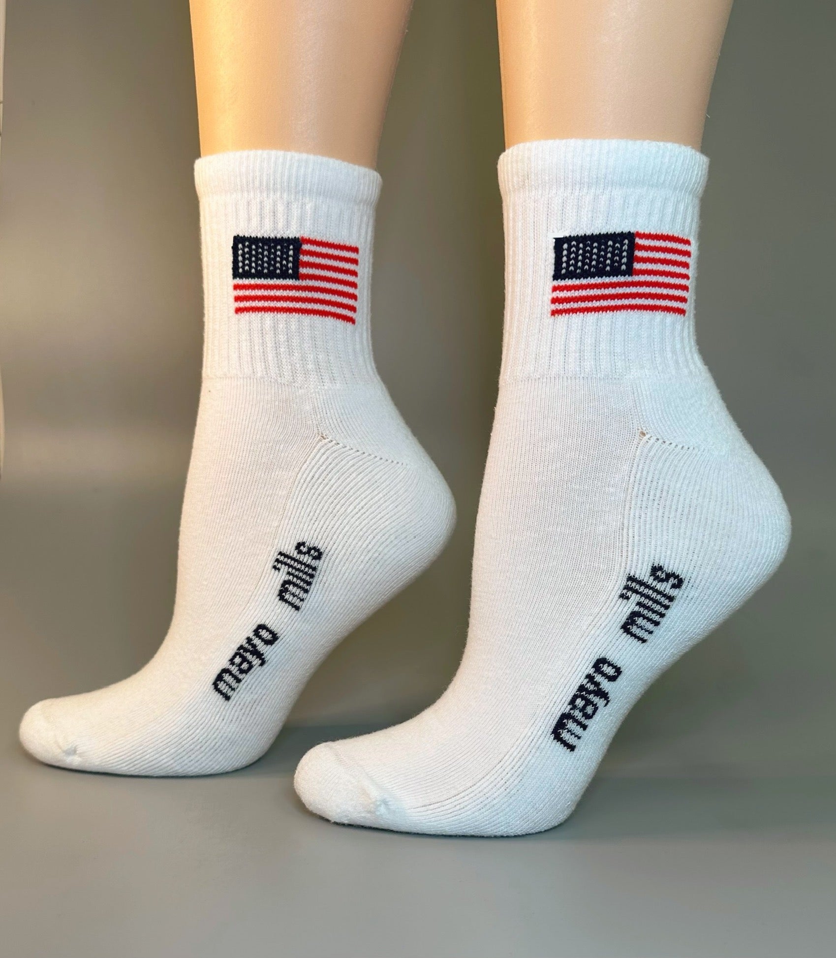 Looking for a stylish way to show off your patriotic side? Look no further than our American Flag Quarter Crew socks! Made from high-quality cotton sourced from our very own family farm, these socks are as comfortable as they are fashionable.