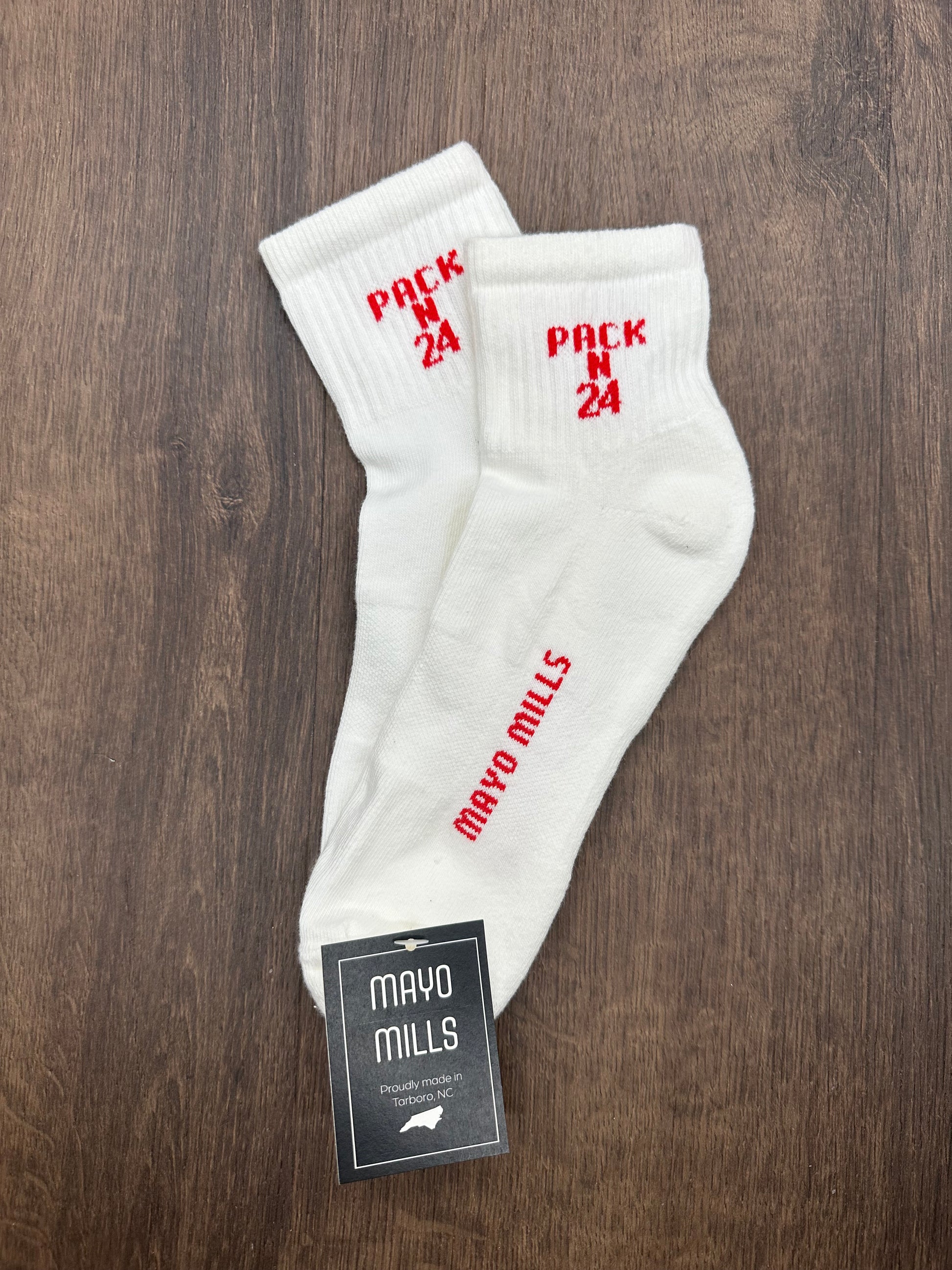 Support NC State on their journey to the championship game with Mayo Mills “Pack N 24” quarter crew socks. Nothing says NC like socks made in NC with NC cotton.