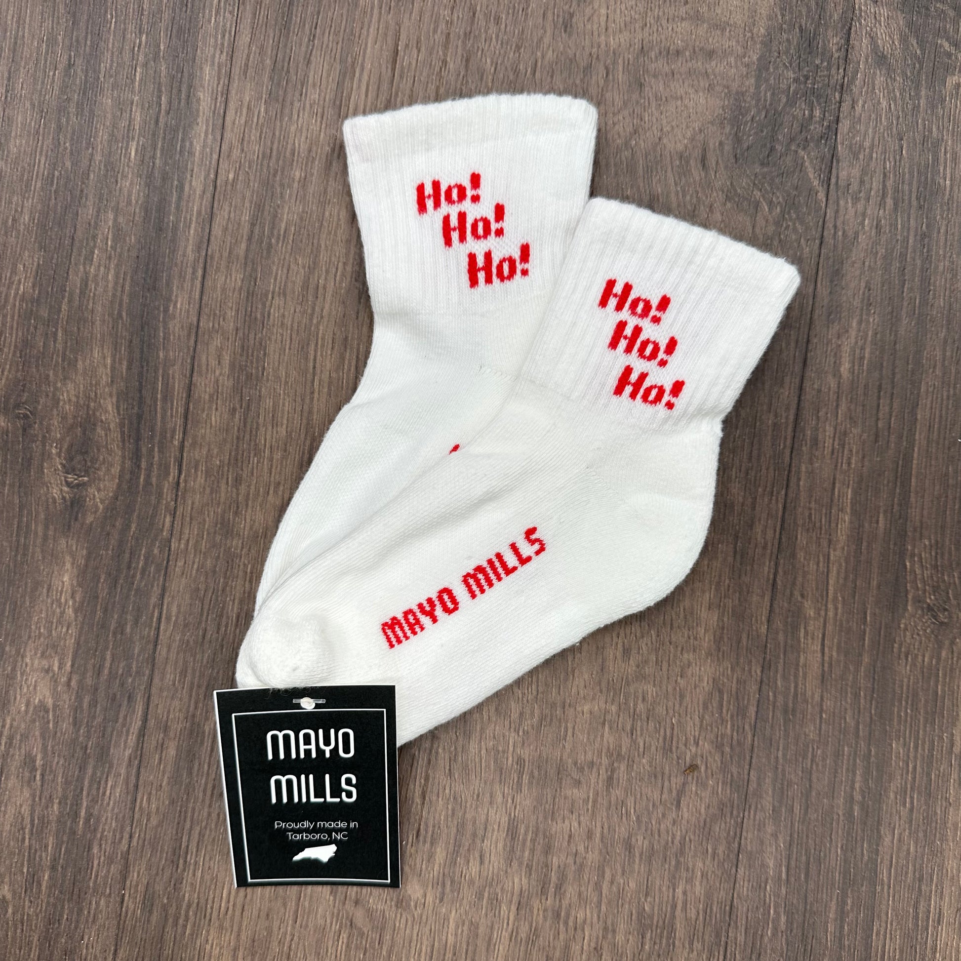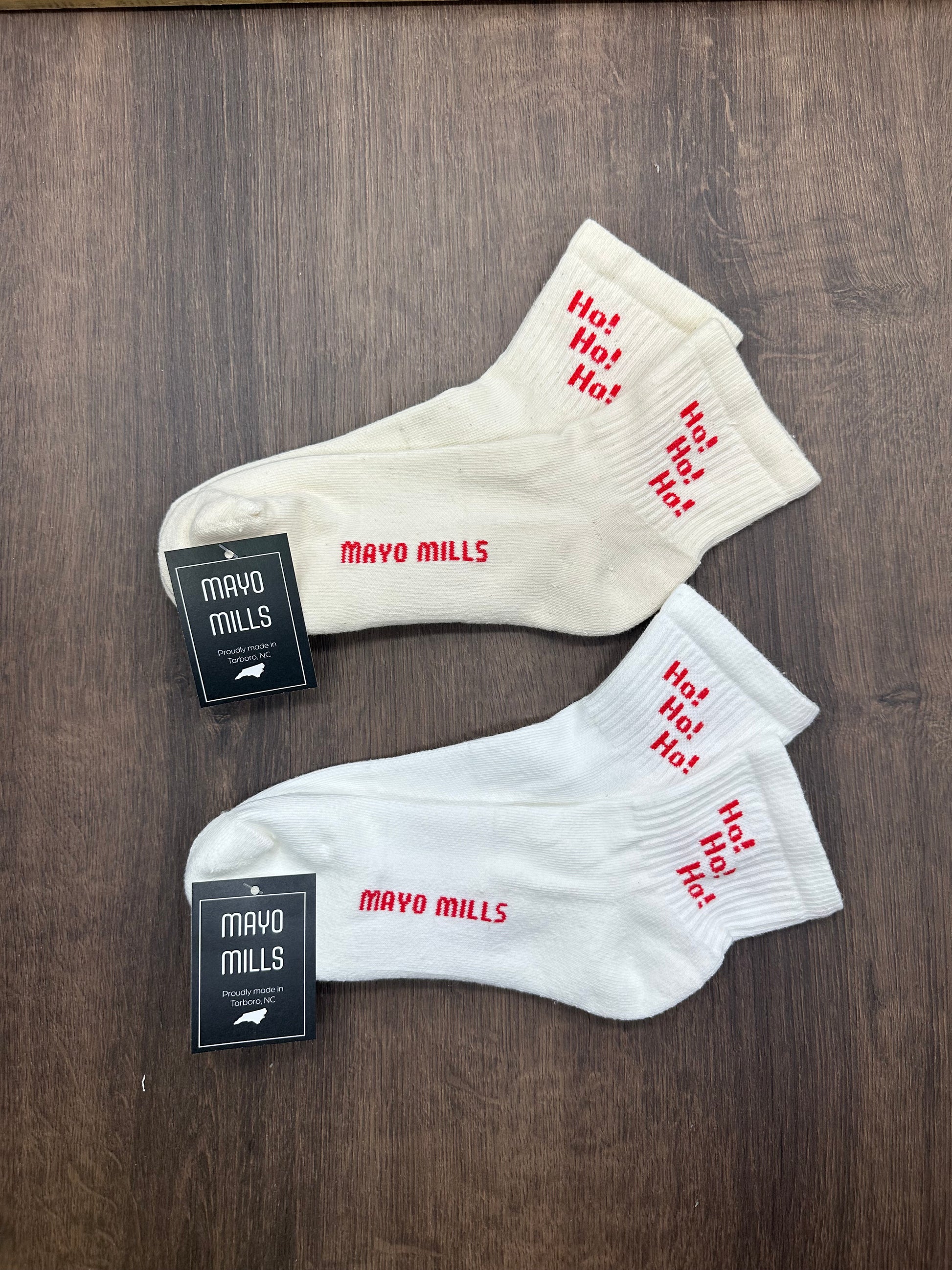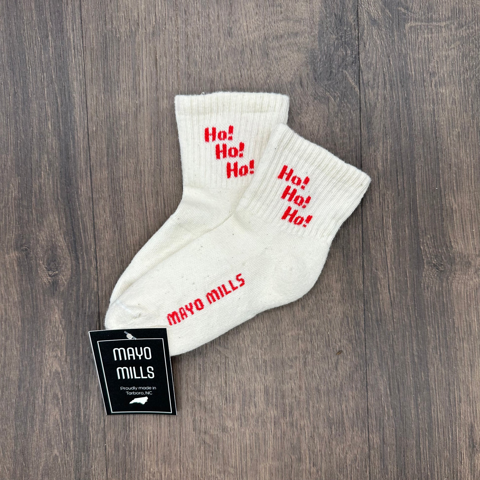 Bring holiday cheer from the ground up with our “Ho Ho Ho” Socks. Featuring Santa’s iconic phrase stitched in bright red on the cuff, these socks are playful, festive, and perfect for the Christmas season. Available in green, natural cotton, and white, they make the ultimate stocking stuffer or holiday wardrobe staple.